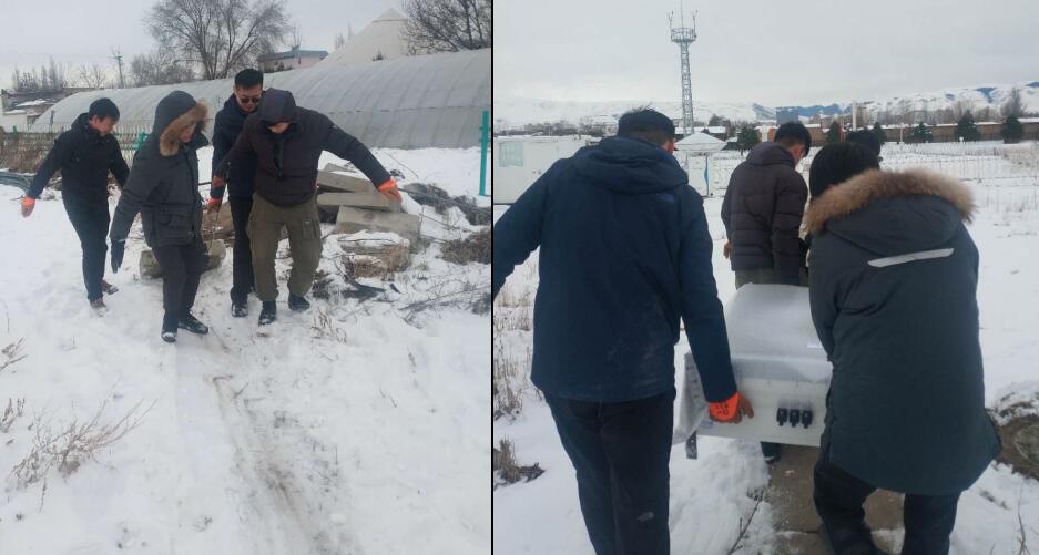 依托国家重点研发计划“重大自然灾害监测预警与防范”重点专项“中亚极端降水演变特征及预报方法研究”第二课题“中亚极端降水强化观测试验”项目支持,中国气象局乌鲁木齐沙漠气象研究所野外试验组于2019年12月25日至31日期间在伊犁哈萨克自治州伊宁县、新源县安装二维视频雨滴谱仪安装工作,试验组成员有刘凡、仝泽鹏、张晋茹3人。