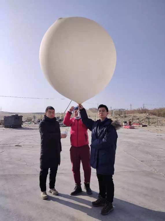 这是科研团队首次冬季在塔克拉玛干沙漠腹地开展加密探空观测试验。观测期间,探测高度最大可达约2.4万米,最低气温达-24摄氏度。团队成员不分昼夜、忍受严寒,密切关注探测设备的运行和观测数据的接收,及时分析观测数据。观测每天进行4次,如遇到寒潮天气增加至6—8次。