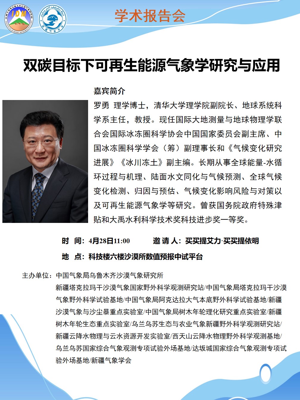 报 告 人: 罗勇 理学博士,清华大学理学院副院长、地球系统科学系主任,教授