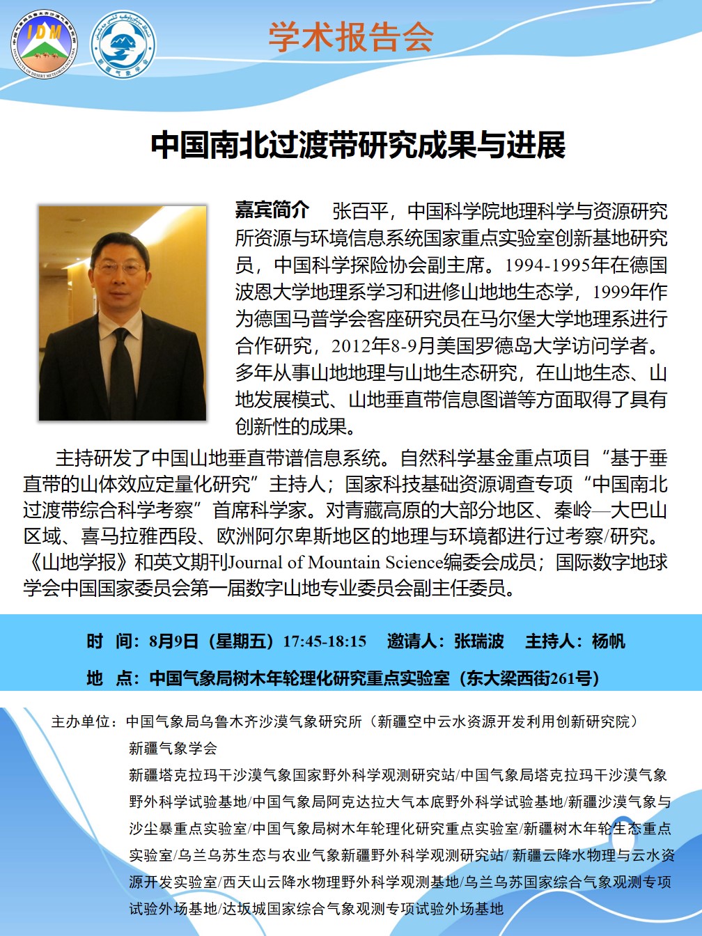 报 告 人:张百平,中国科学院地理科学与资源研究所资源与环境信息系统国家重点实验室创新基地研究员